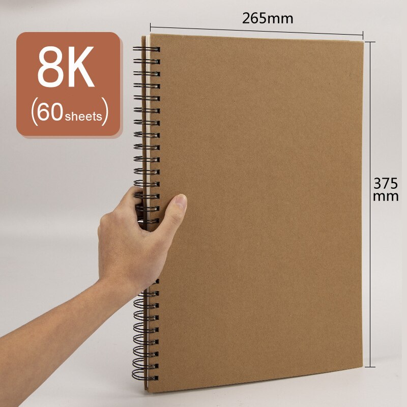 60 Sheets Retro Spiral Coil Sketchbook Kraft Paper Notebook Sketch Painting Diary Journal Student Note Pad Book Memo Sketch Pad