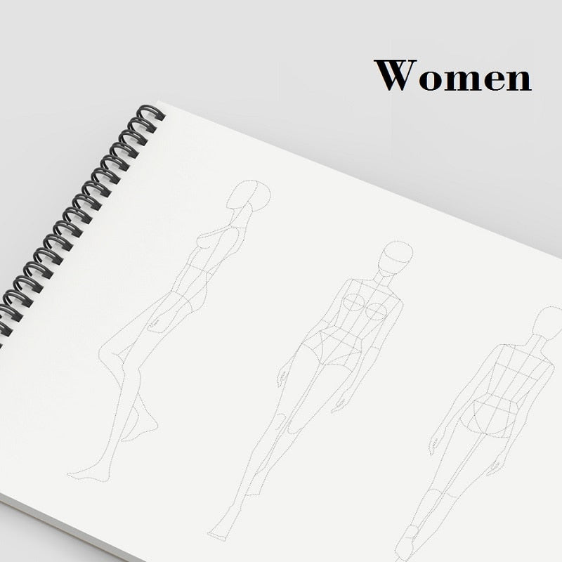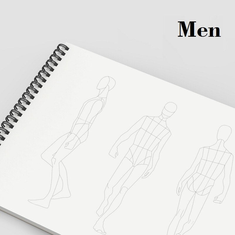 A4 Clothing Designer Dotted Line Human Body Painting Notebook Design Professional Women's Men's Clothing Sketch Book 50 sheets