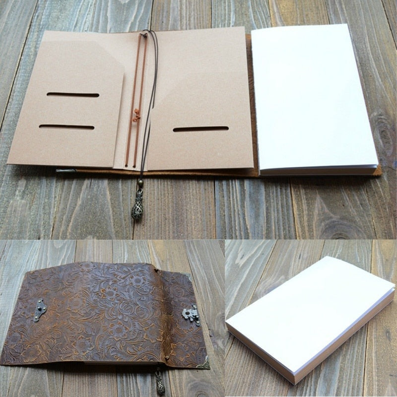 Embossed Pattern Soft Leather Travel Notebook with Lock and Key Diary Notepad Paper for Business Sketching & Writing