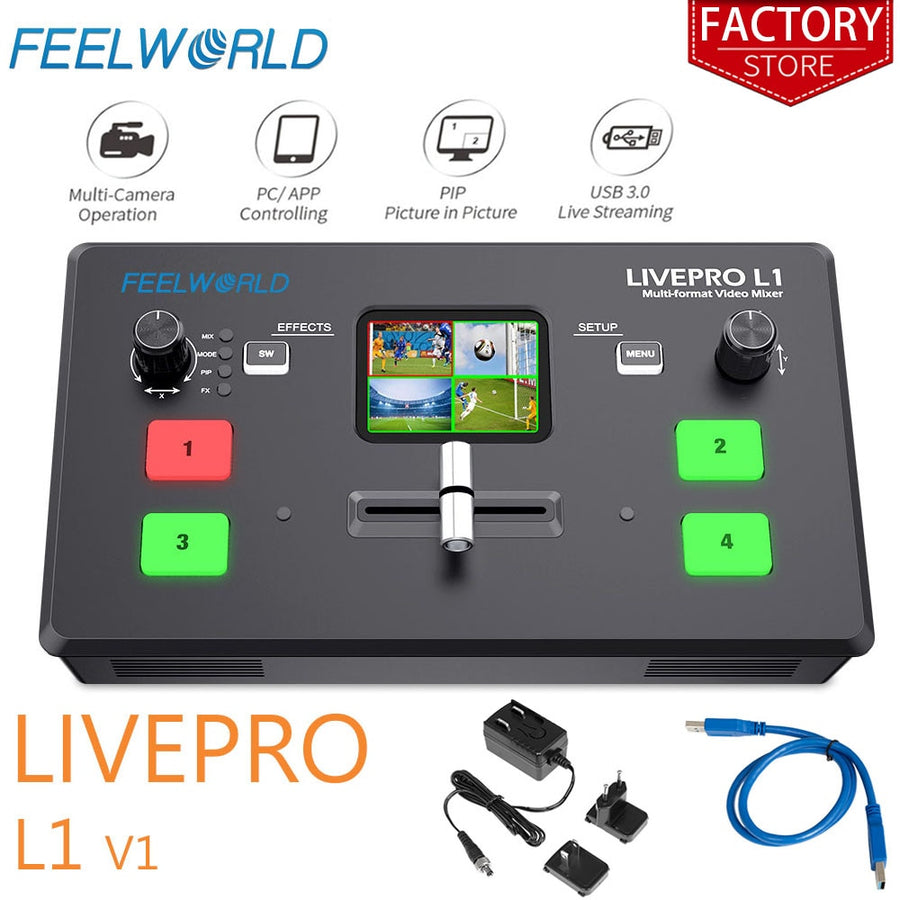 Feelworld Live Streaming Switcher Livepro L1 V1 Video Mixer HDMI Multi-Format Studio Record Preview Mode For DSLR Camera Youtube