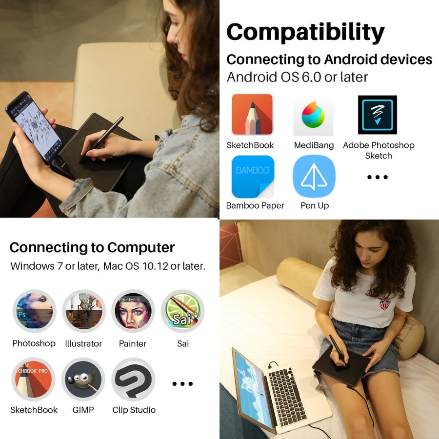 Huion HS64 Graphics Tablet Digital Pen Drawing Tablets with 8192 Battery-Free Stylus Press Keys Support Android Windows MacOS