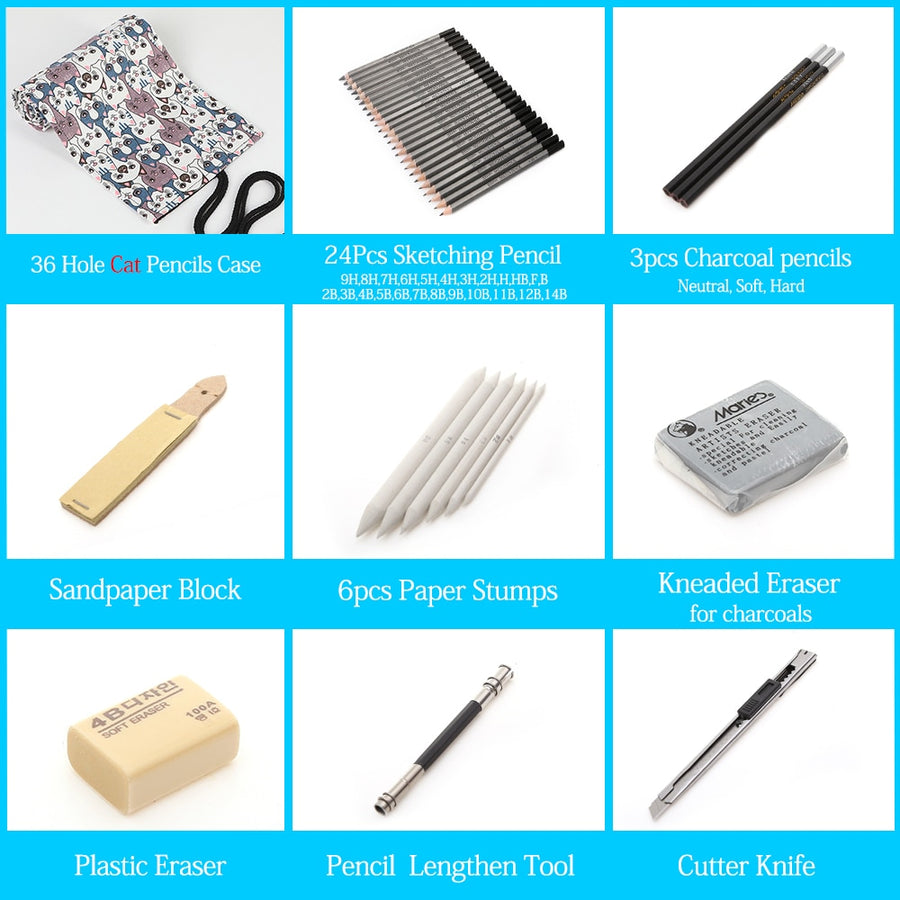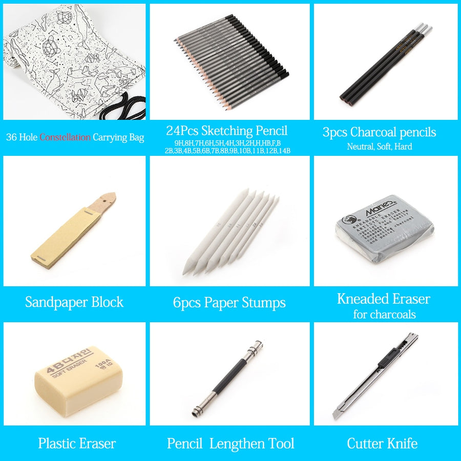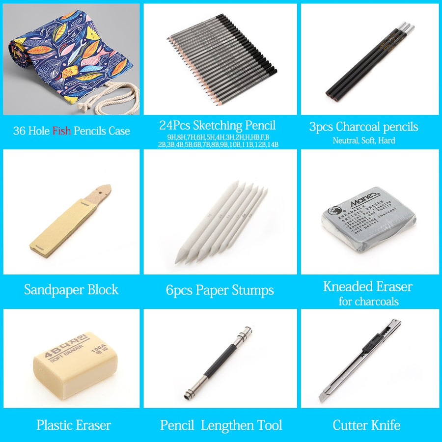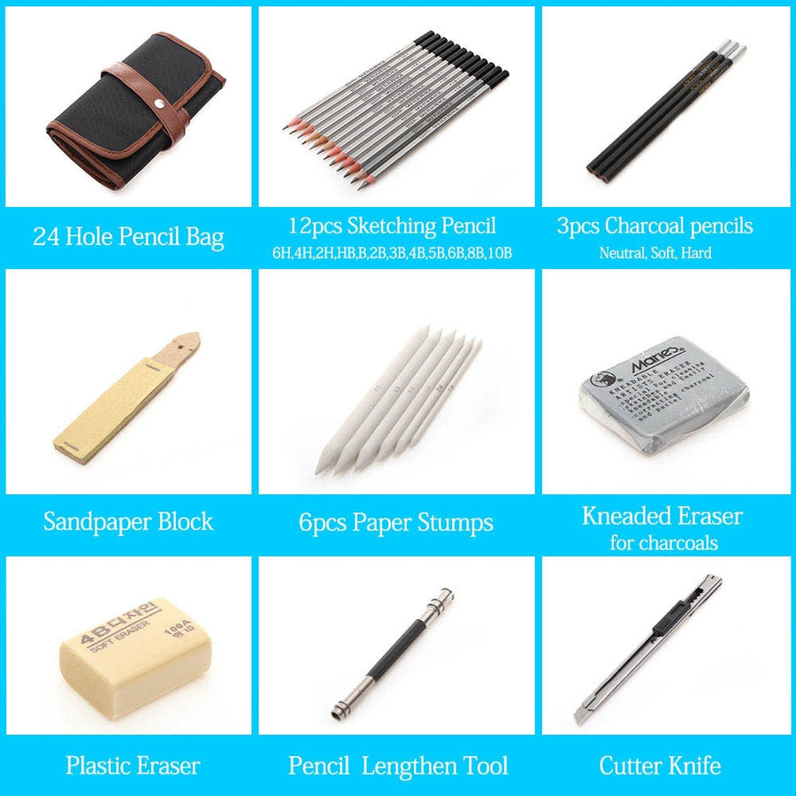 27/39pcs Sketch Pencil Set Professional Sketching Drawing Kit Wood Pencil Pencil Bags For Painter School Students Art Supplies