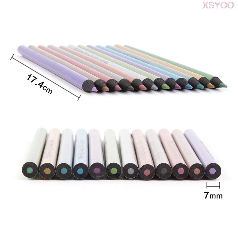 Brutfuner 12 Colors Metallic Pencil Drawing Sketch Set Soft Wood Golden Color Pencil For School Student Stationery Art Supplies