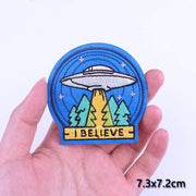 DIY Adventure Travel Patches For Clothing Mountain Camping Badge Space Stripe Iron On Patches On Clothes UFO Embroidery Patch