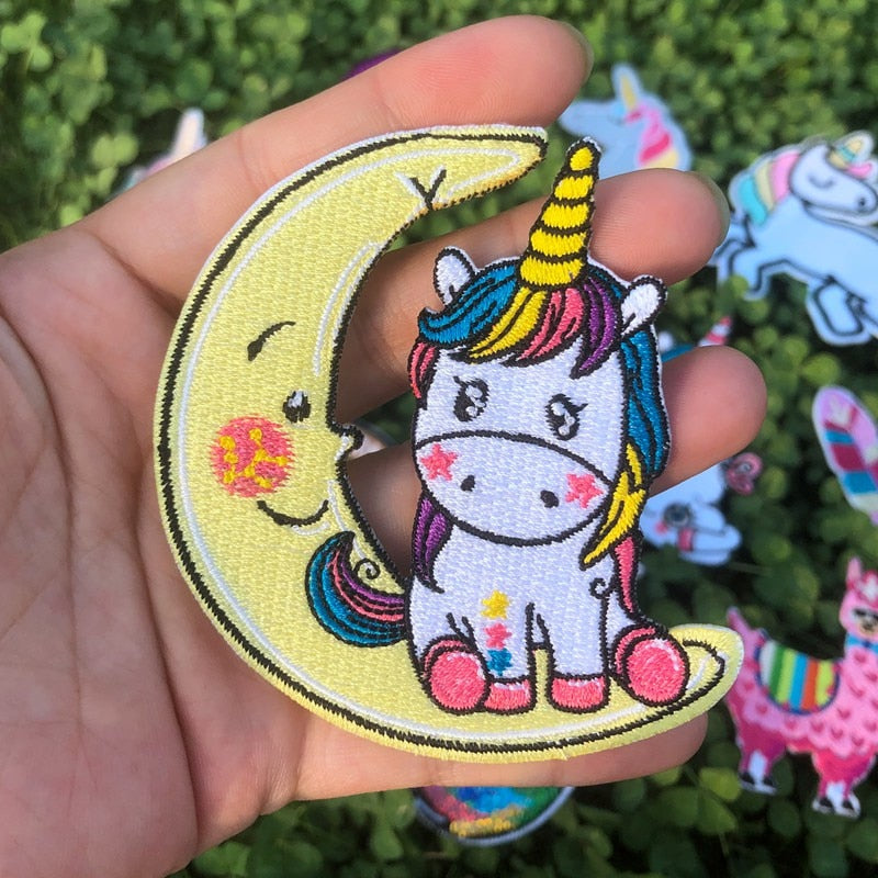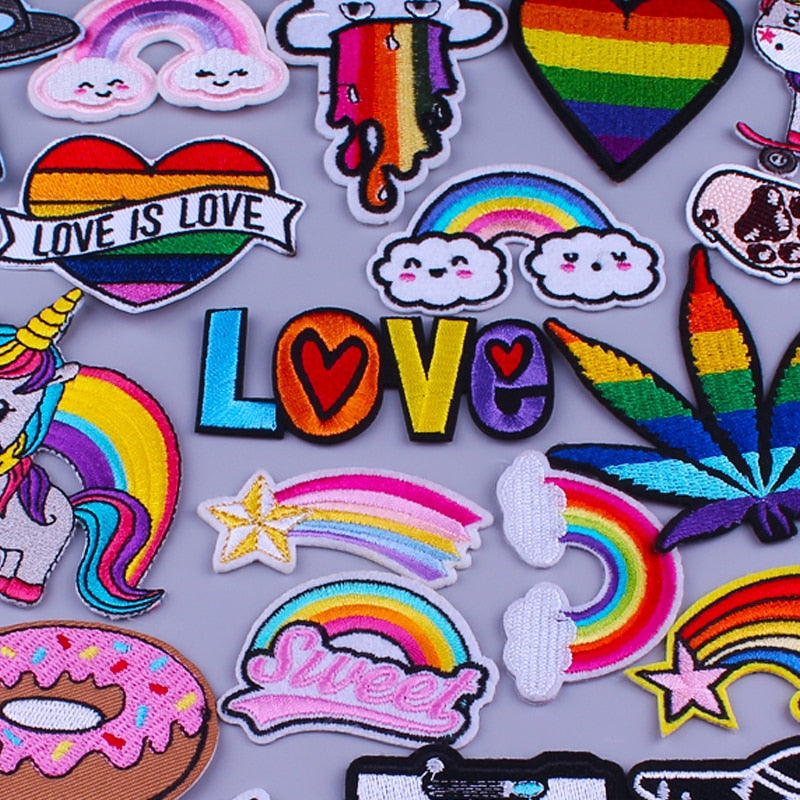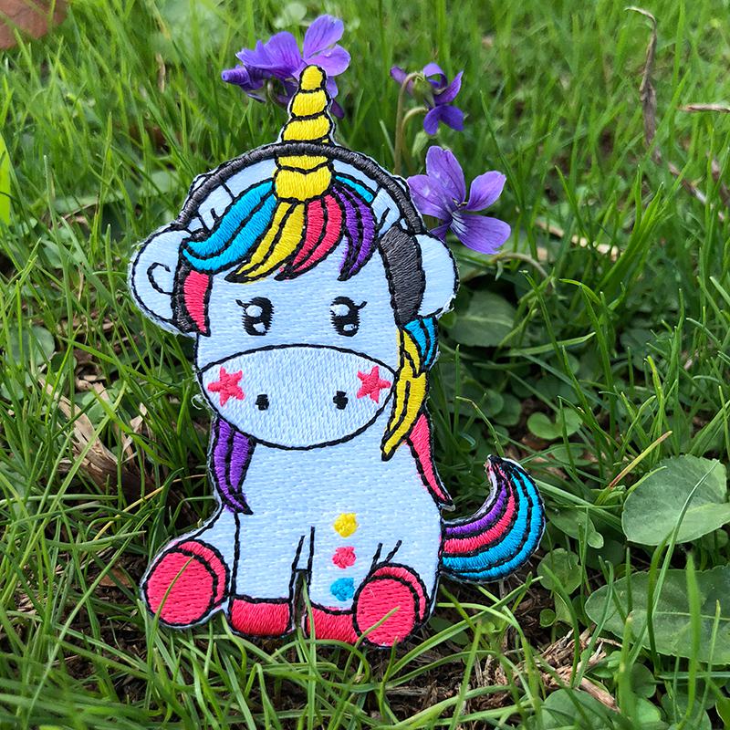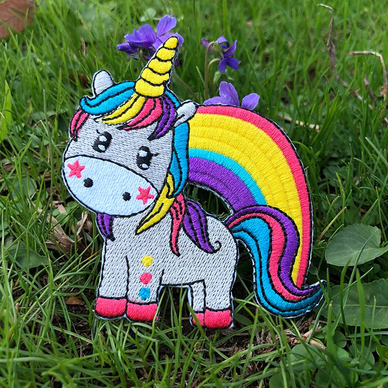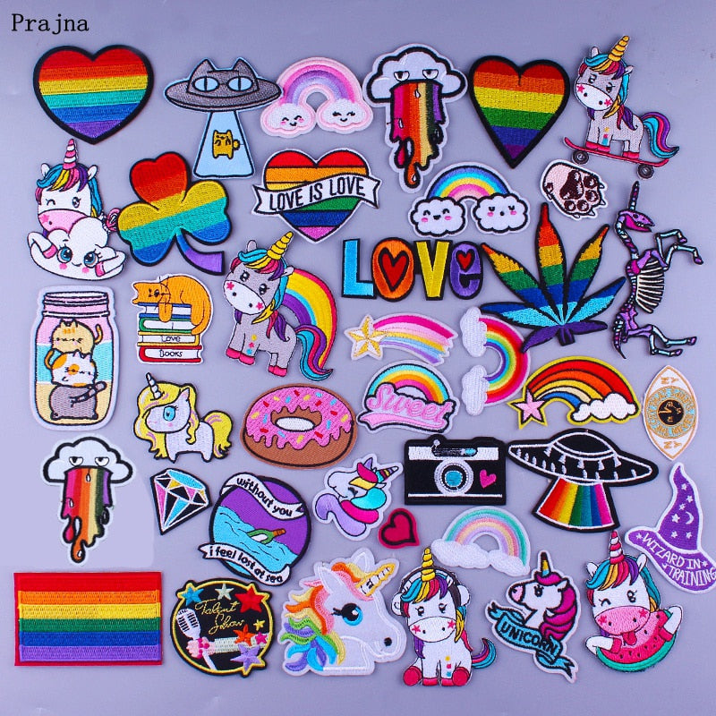 Prajna Hippie Unicorn Patches Embroidered Patches For Clothing DIY Magic Rainbow Stripes Iron On Patches For Kids Cloth Applique