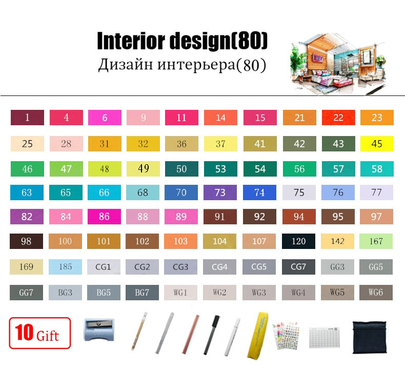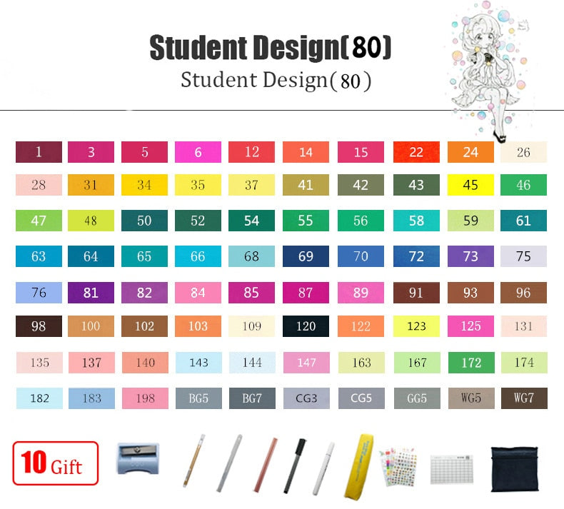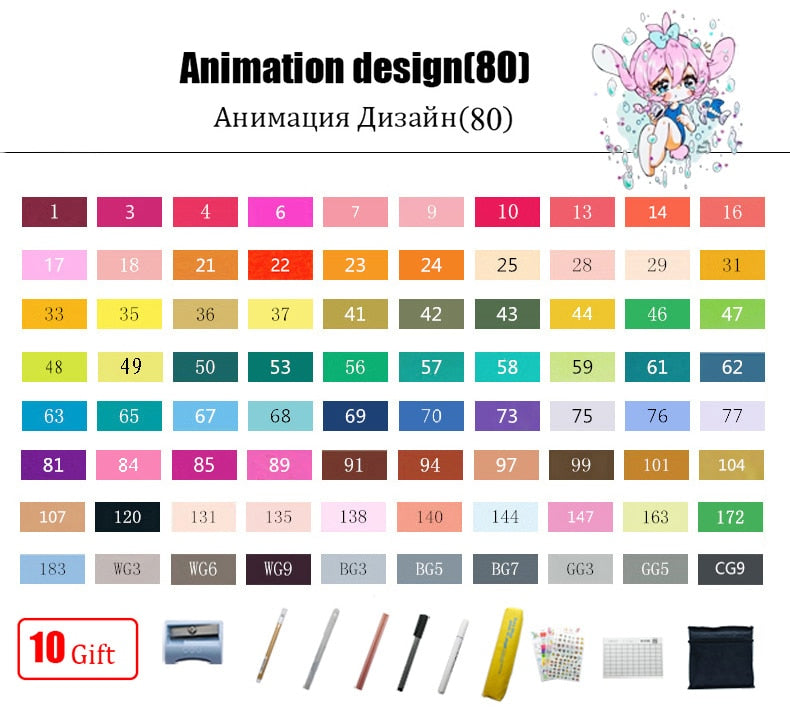 TouchFIVE 30/40/60/80/168 Color Art Markers Set Dual Headed Artist Sketch Oily Alcohol based markers For Animation Manga
